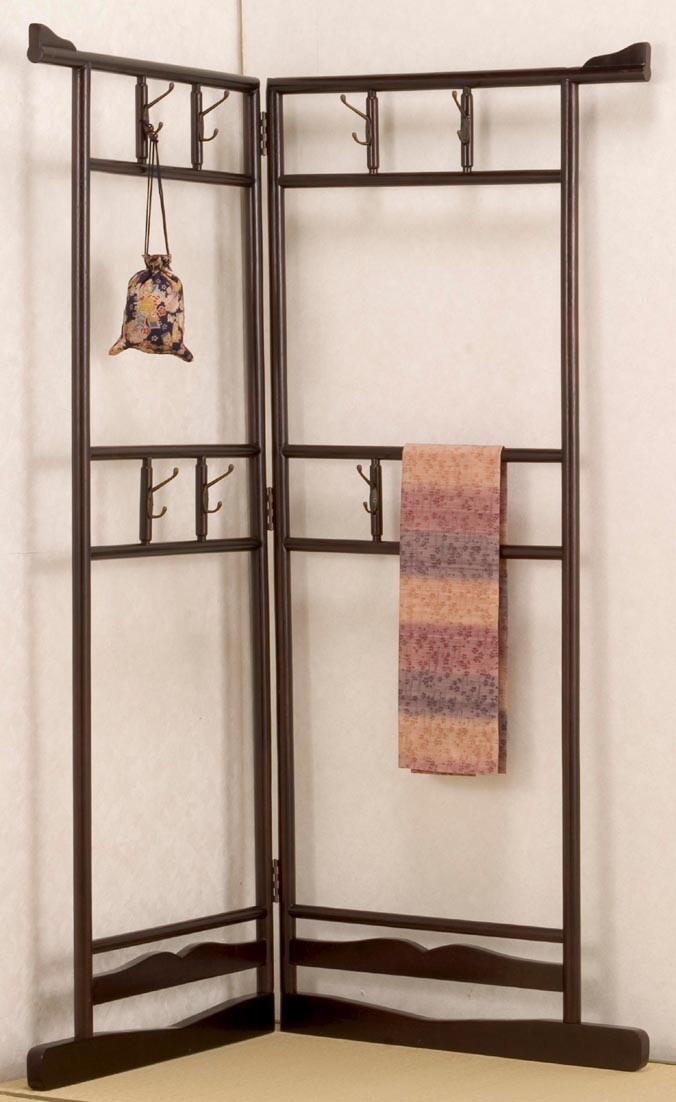 和室洋間両用 アジアン家具 着物掛け 衣桁 衣紋掛け 折り畳み ハンガーラック 衣桁 二段。