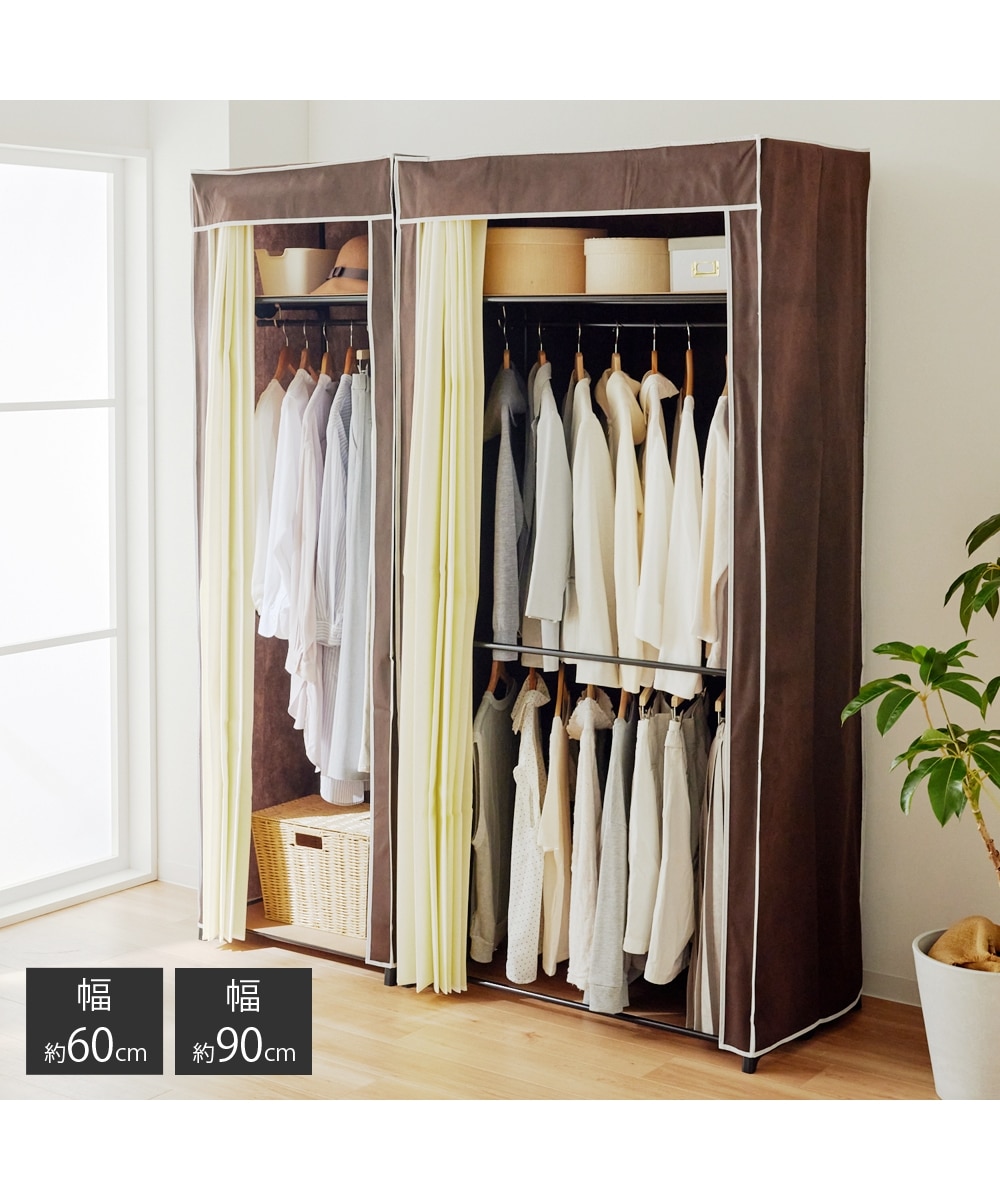 収納力バッチリのカーテン付ハンガーラック。