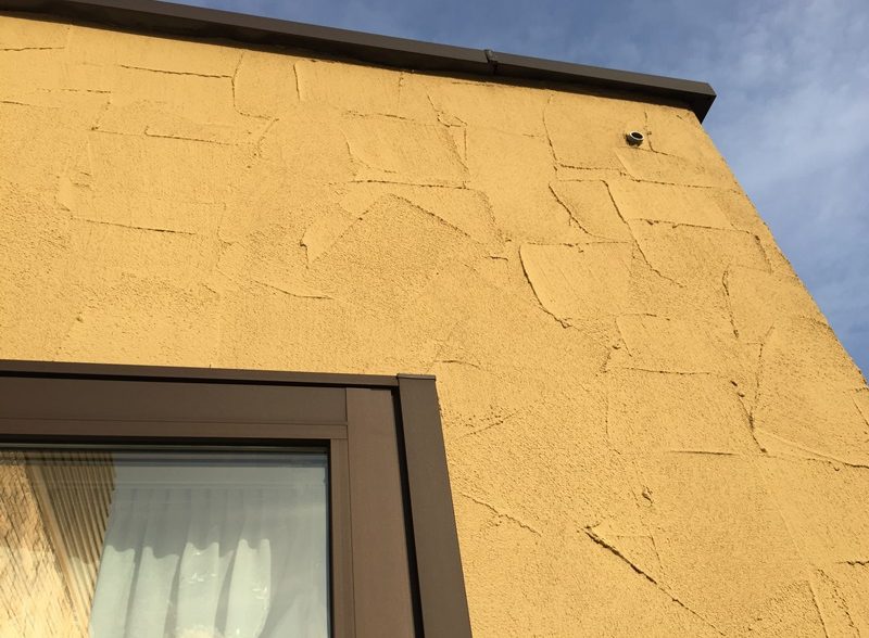 画像有 外壁ジョリパット仕上げで下地目地が浮き出ています。手抜き施工なのでしょうか?リビロペイント。