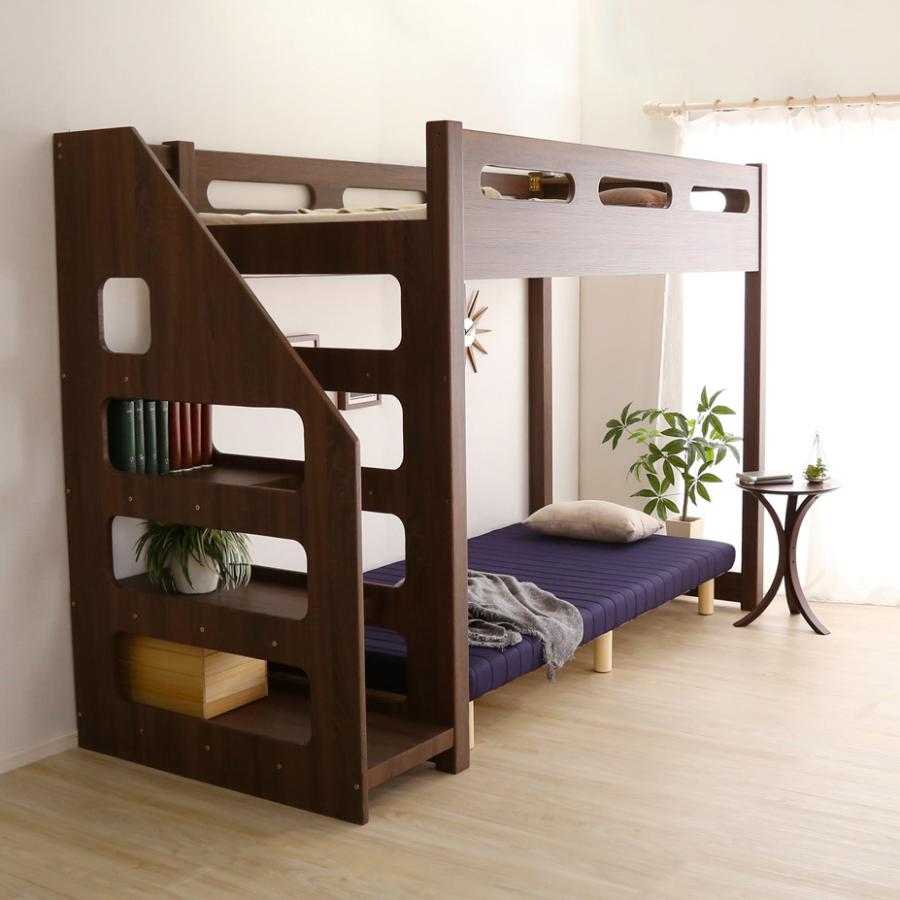 ロフトベッド 階段 階段付き ベッド シングル 宮付き 一人暮らし ワンルーム 子供部屋 おしゃれ シンプル 宮。
