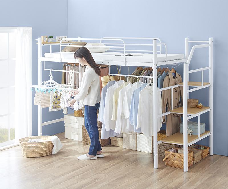 送料無料 シングル ナチュラル ホワイト ロフトベッド ハイタイプ ロフト パイプベッド システムベッド 子供部屋 宮付き コンセント付コンセント2口付き 宮棚 一人暮らし ワンルーム シングル ナチュラル ホワイト サイズ シングル ナチュラル ホワイト ベッド。