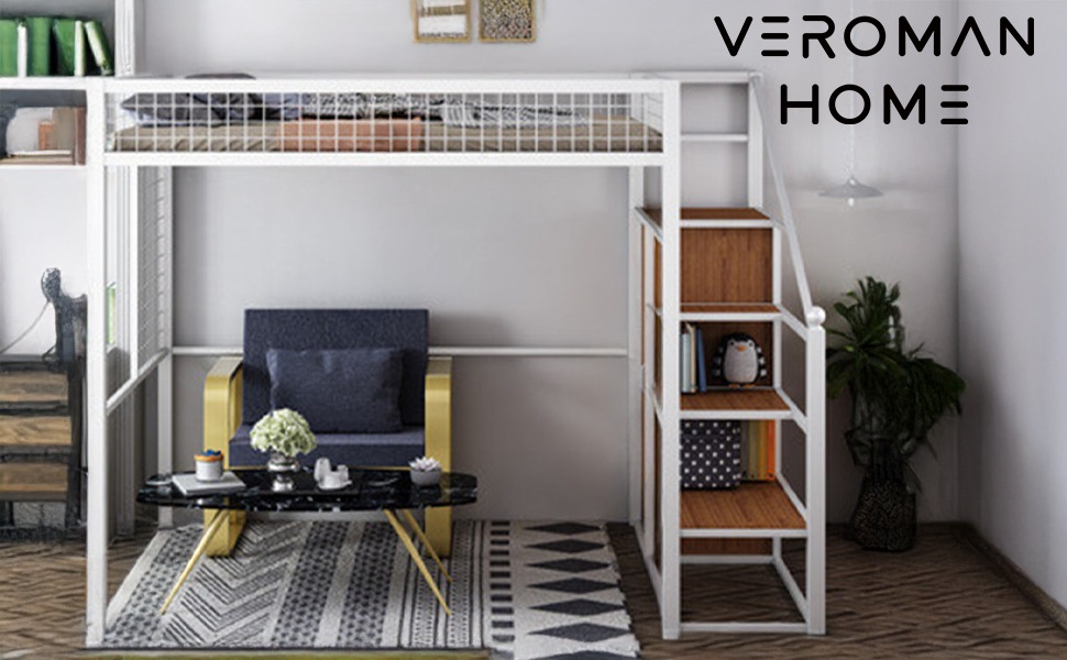 VeroMan ロフトベッド 上下2段構造 ベッド下デスク付き アイアンフレーム 省スペース 耐荷重強化 ワンルーム 多機能ベッド 韓国インテリア高さ205cm×幅210cmベッド・寝具,ベッド韓国インテリアならVEROMAN HOMEヴェロマン ホーム。