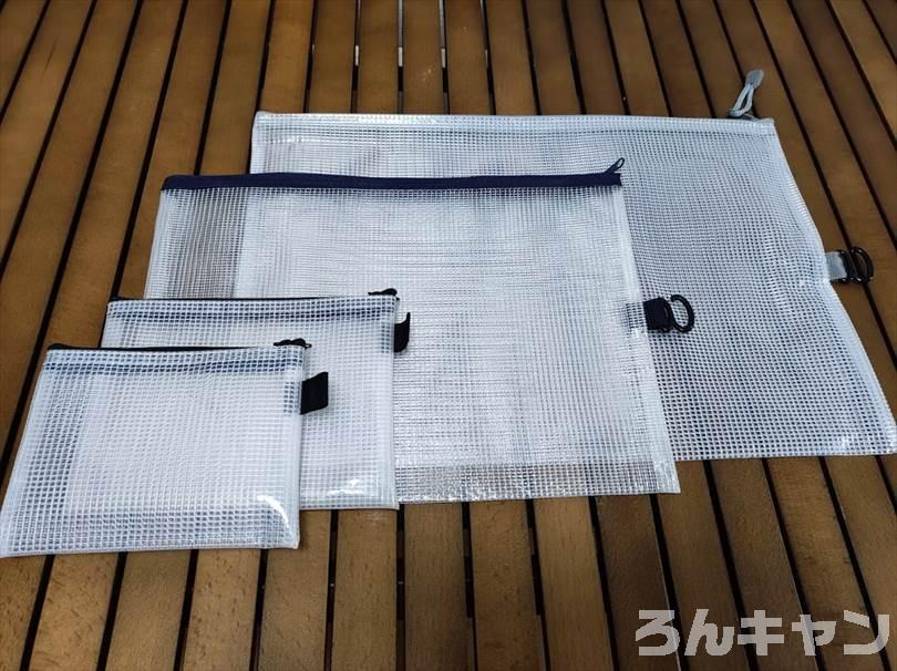 100均 ダイソーのビニールネットケースが便利サイズ別にキャンプ道具を収納できる – ろんキャン。