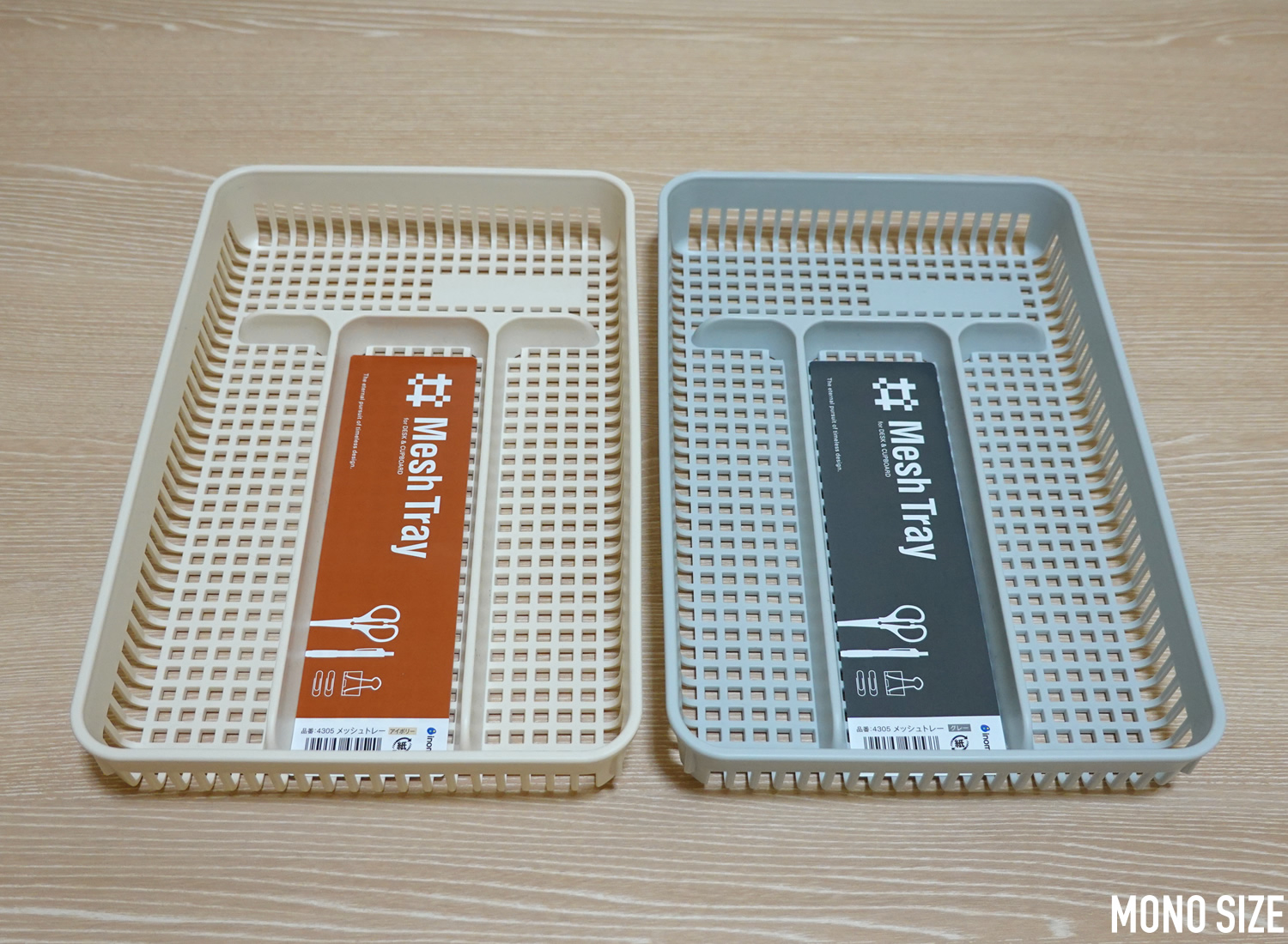 100均「メッシュトレー」の商品情報とサイズ・収納例。ダイソーで販売 4905596430520。