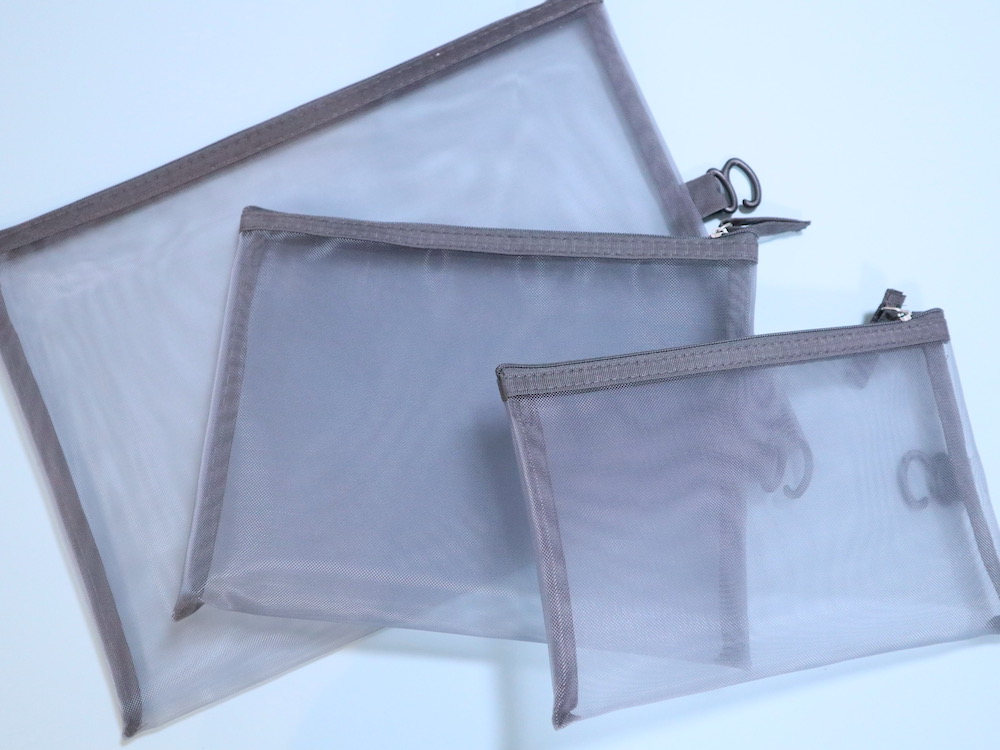 100均 収納やバッグの中身整理に最適!ナイロンメッシュケースが万能すぎる ダイソーMIRAISIYAミライシヤ。