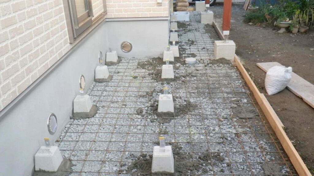 基礎石を使わず直接モルタルで固めるガーデンライフ彩。