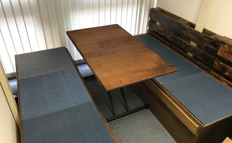 オフィスに小上がりをDIYで簡単に作る2パレットとユニット畳でシンプルな小上がりを低予算で。