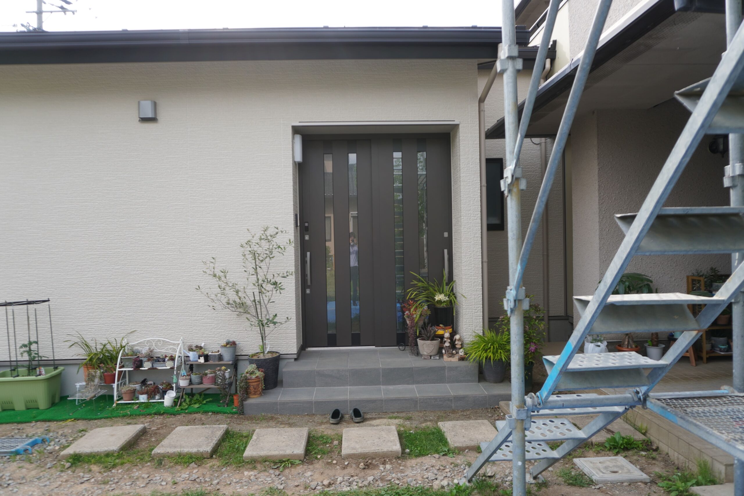 枕木の玄関アプローチ施工オプション工事実例トトハウス。
