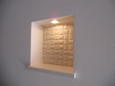 玄関のニッチに照明器具を取り付けて個性的な空間にする - IZILOOK。