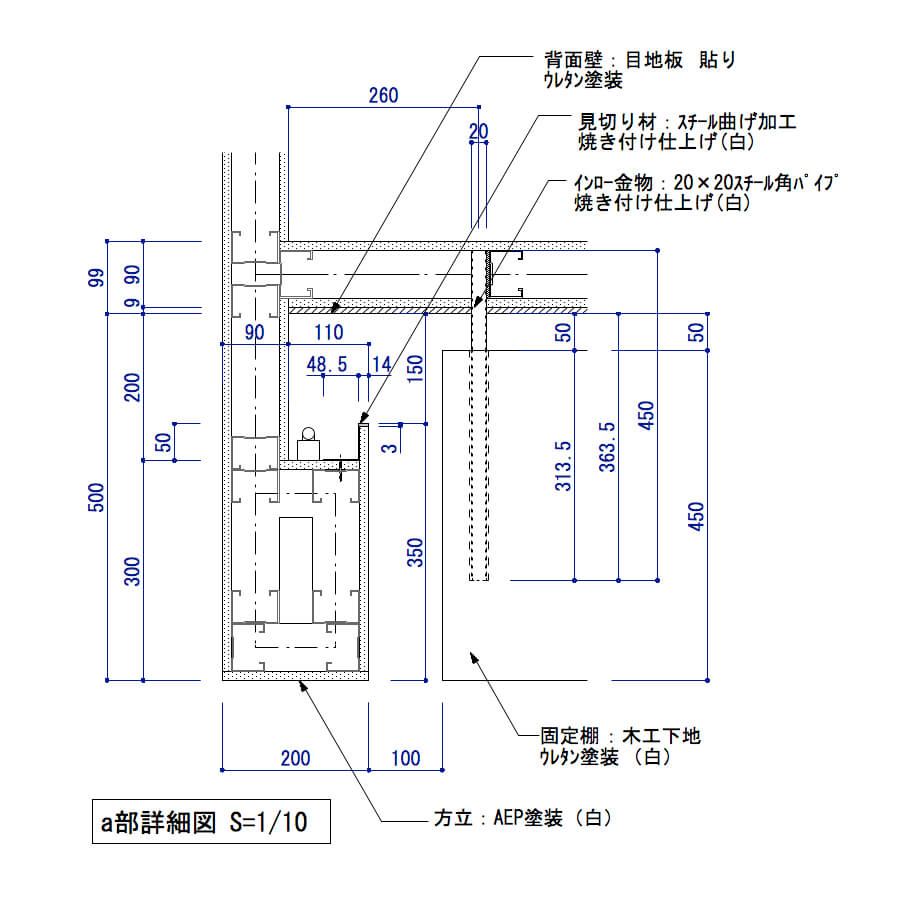 間接照明が際立つニッチ壁面什器の作図事例図面屋.com 店舗設計詳細図「虎の巻」。