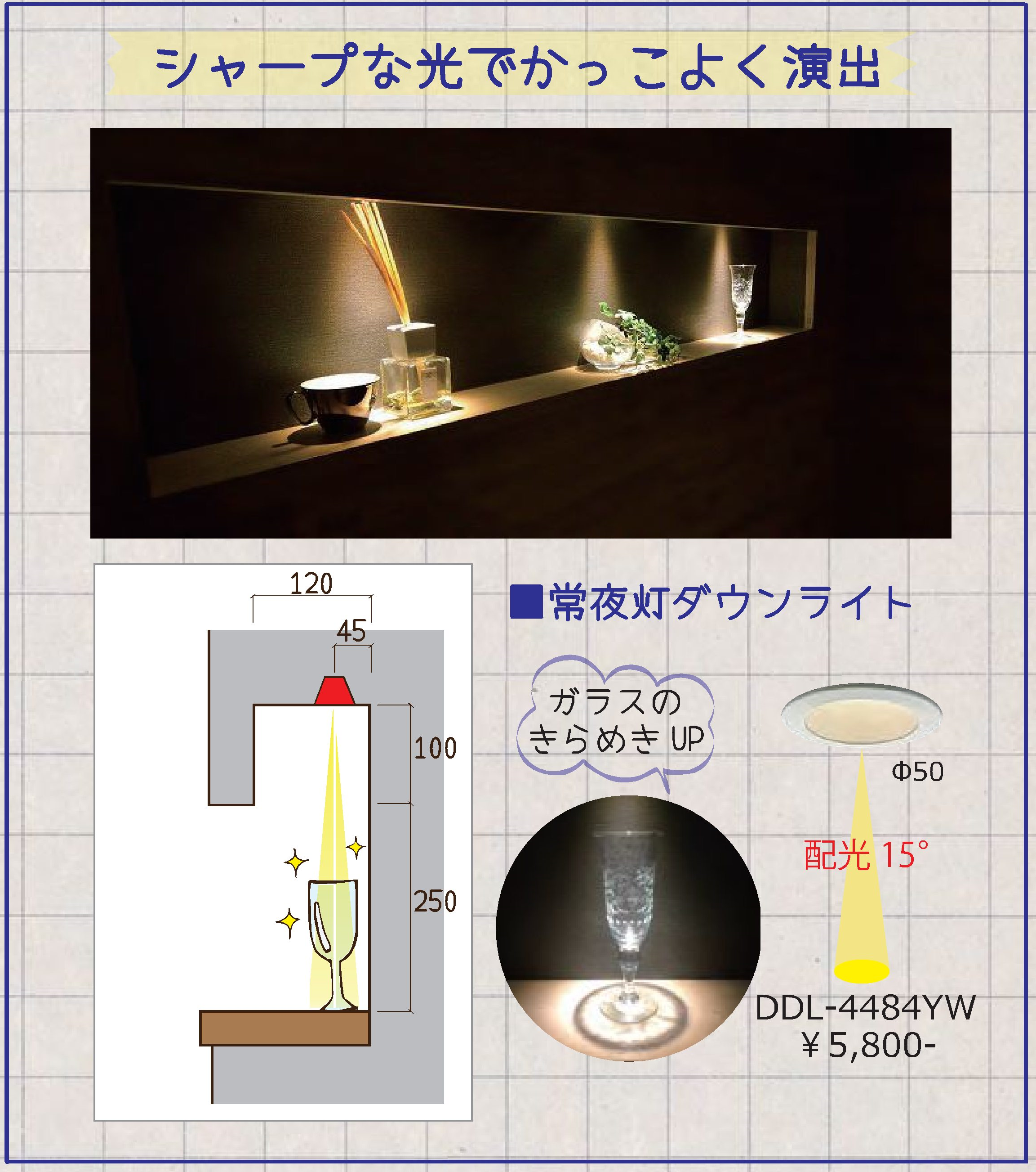 おしゃれなニッチを演出するための照明ニッチの形状に合わせた製品もおしゃれなニッチを演出するための照明ニッチの形状に合わせた製品も。