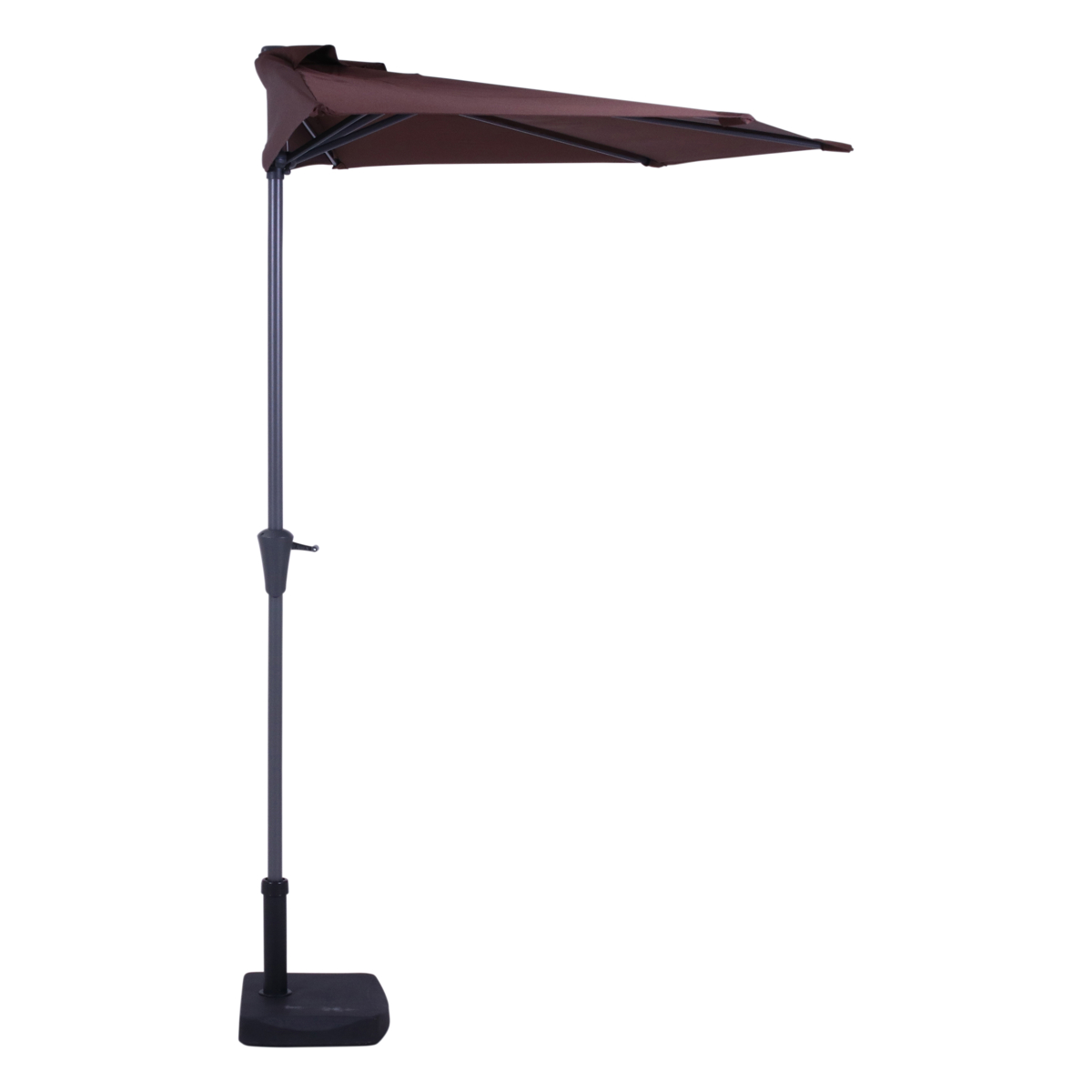 ベランダや壁際に設置可能な半円アルミガーデンパラソルブラウン問屋卸し格安通販モモダ家具。