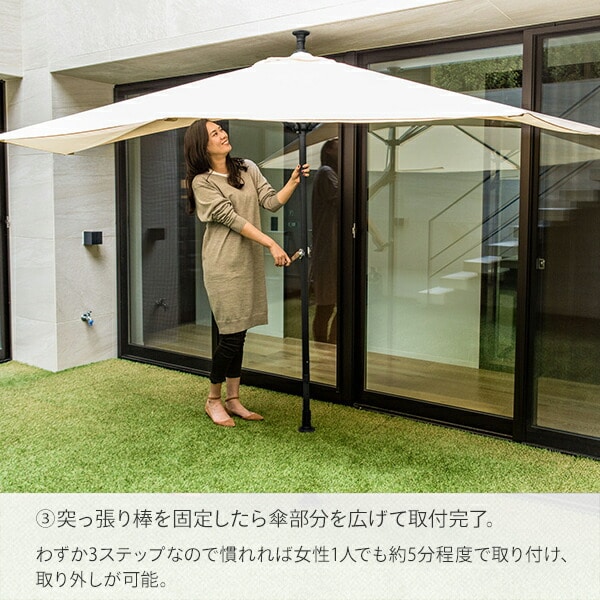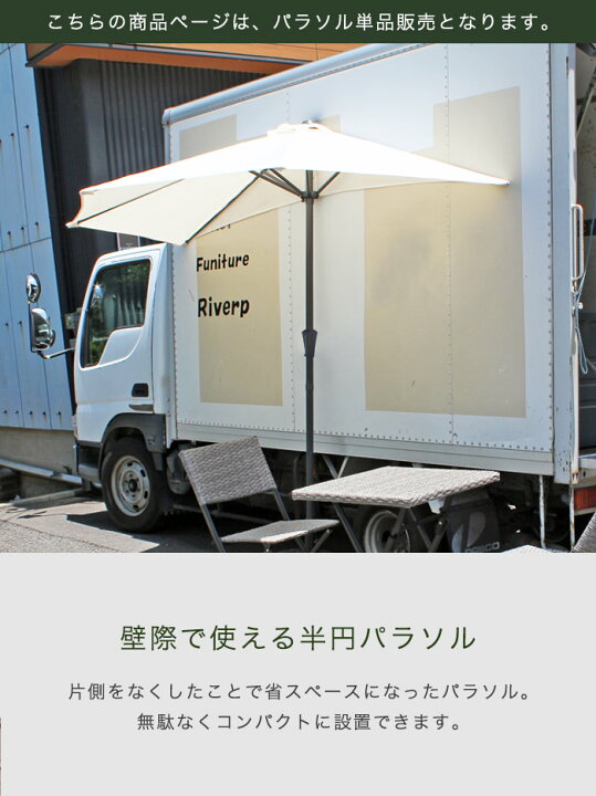 パラソル ガーデンパラソル 半円 ガーデン スタンド 日よけ 角度調整 カフェ ベランダ テラス おしゃれ かわいい ハーフ 省スペース 半円パラソルハーフパラソル Mesil メシル パラソル単体販売 ナチュラル グリーン - 通販家具とインテリアの通販 RoomClip。