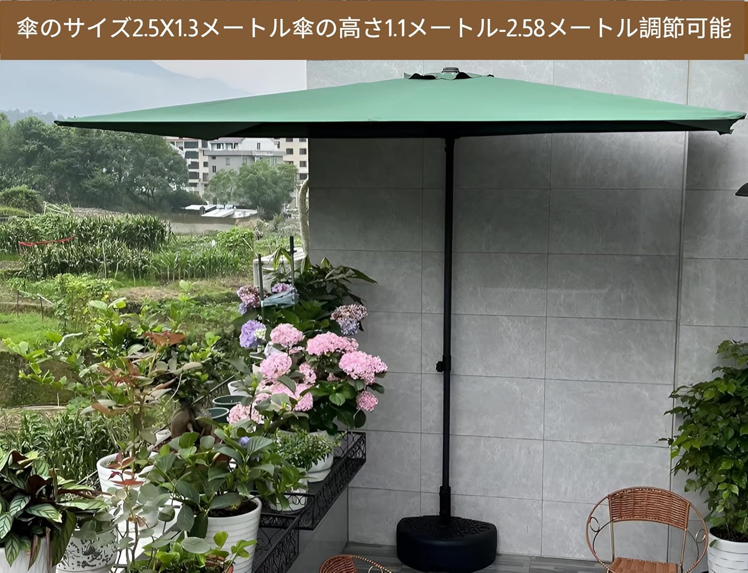 JIMSHUINIOガーデンパラソル 半円パラソル約 長さ250cm×幅130cm×高さ170-260cm パラソルハーフAmazon.co.jp: パラソルセット ハーフパラソル ベース付き 半分 レクタングル パラソル 壁にぴったり 250 × 120cm 長方形大型 日除け 紫外線カット 防水 テラス。
