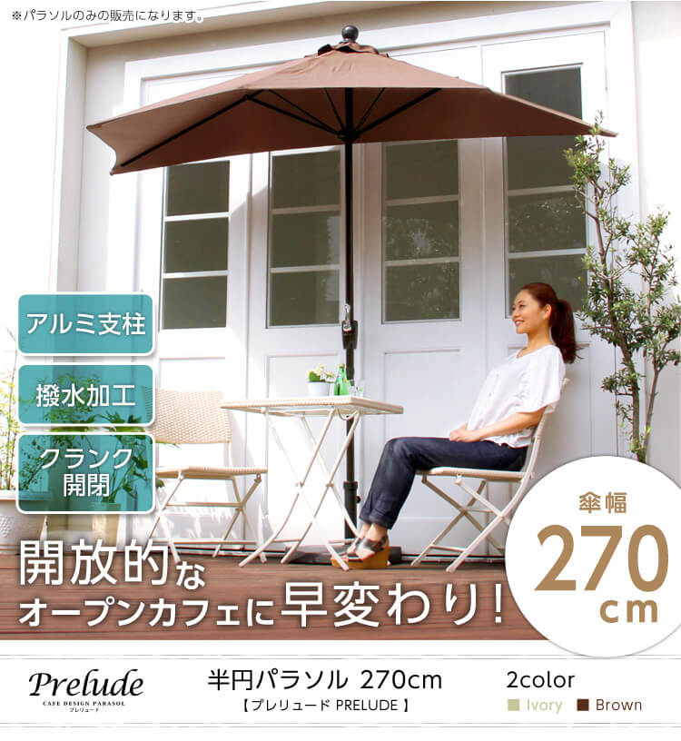 半円パラソル プレリュード-PRELUDE-ガーデン パラソル 半円 省スペース 日よけ 家具通販店Sotao。