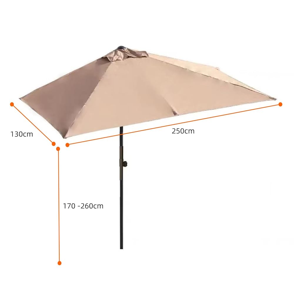 壁にぴったり ガーデンパラソル 半円 260cmのトープ パラソル 風に強い 専用ベース付き 大型 UVカット 撥水加工 組立簡単 クランク開閉日除け アウトドア用 庭傘 ビーチパラソル ベランダ・屋外・庭・バルコニー・カフェ・テラス・店頭などに適用 ガーデンパラソル。