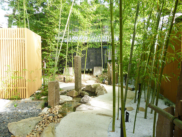木調の角柱で玄関前を目隠し 写真集 京都府宇治市、京都市、滋賀県のエクステリア・外構工事・お庭のリフォームならガーデンエレガンス。