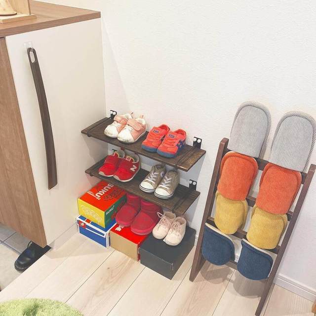 写真1枚目- 玄関でゴチャつく 子ども靴の収納アイデア 5選!セリアやダイソーがやっぱり使える♪ - LOCARI ロカリ。