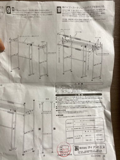奥行53cm 縦横に伸縮する突っ張りクローゼットハンガーラック カーテン付き。