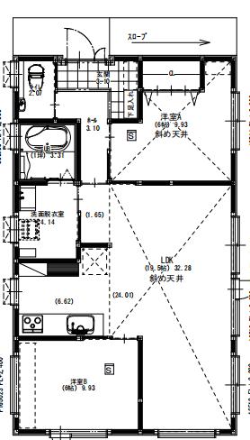3LDKの間取り 片流れ屋根の廊下を少なくした住まい 開放感いっぱいのリビング ::鶴岡市の注文住宅・間取りプランと坪数GNIホーム酒田市。