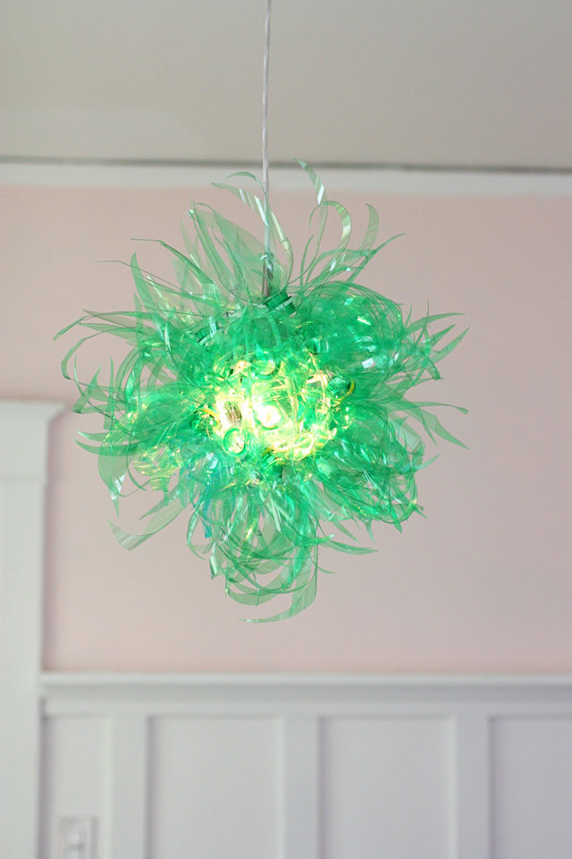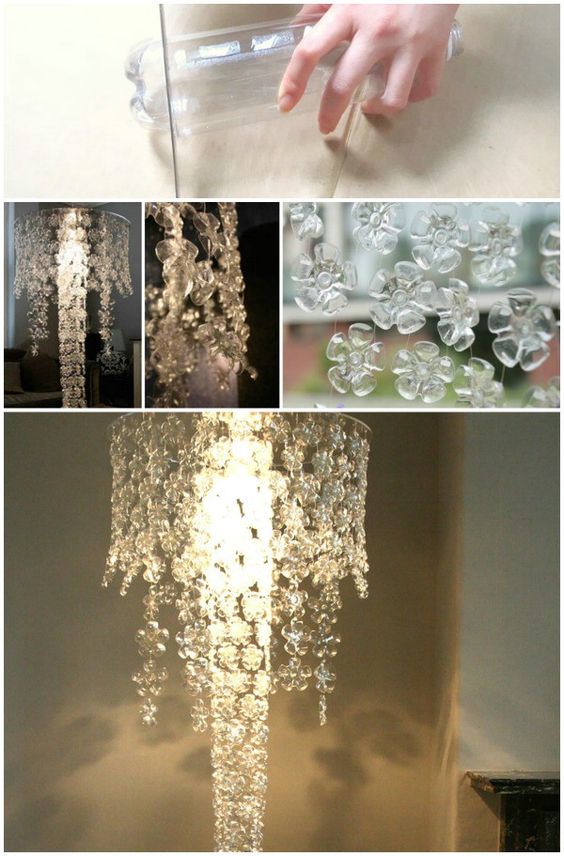 ペットボトルのシャンデリアとランプ:写真と教材のクラス。