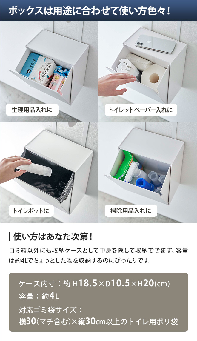 山崎実業 yamazakitower ウォールトイレポット&収納ケース タワーサニタリーボックス トイレ 洗面所 ごみ箱 壁掛け トイレ収納トイレポット ゴミ箱 生理用品 壁面 おしゃれ シンプル ホワイト ブラック yamazaki towerシリーズ山崎実業店舗什器・店舗備品。