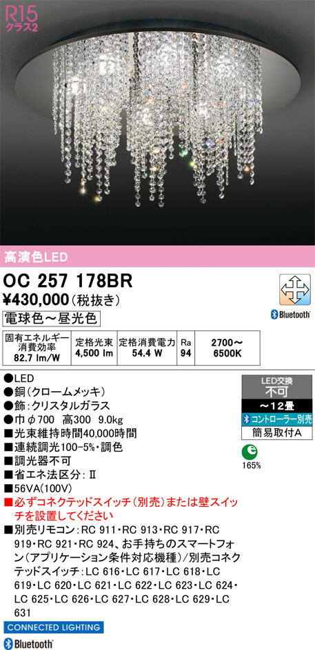 OC257178BR オーデリック LEDシャンデリア 〜12畳代引き不可照明器具販売ルセル。