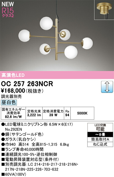 OC257263NCR オーデリック LED シャンデリア ~8畳 昼白色 調光タイプ ライト・照明器具。