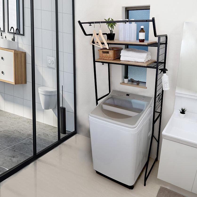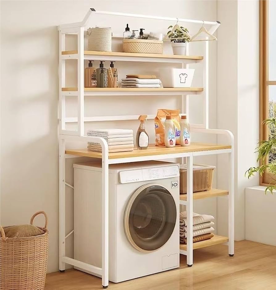Amazon.co.jp: ドラム式洗濯機収納ラック ハンガーレール付き 5段洗濯機キャビネット 多機能洗濯機・乾燥機上収納棚 金属フレームランドリールーム用 Black+wood color,110cm: 大型家電。