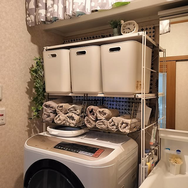 洗濯機の上の収納はスチールラックにお任せ!ドラム式も対応の整理術。