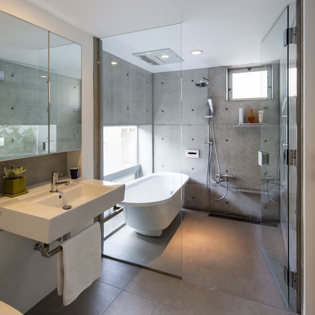 おしゃれなバスルームで至福の時間!家づくりで取り入れたい10のデザイン例重量木骨の家。