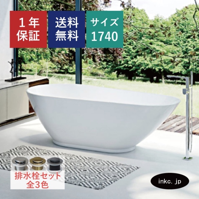バスタブ 浴槽 おしゃれ かわいい ホテル アンティーク風 置き型 排水 インテリア diy リフォーム リノベーション 海外 洋式 新築 賃貸 部屋物件 アパート ショールーム メーカー 輸入 高級 重さ サイズ 幅 1730 奥行き 780 高さ 570 INK-0202011H。