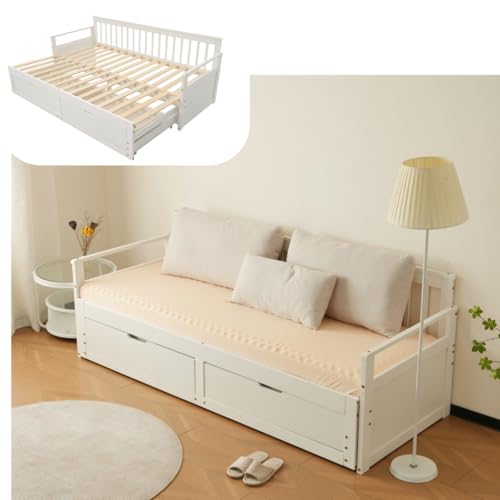 Amazonソファーベッド 伸縮式 3人掛け 木製 引き出し付き 収納 伸長式ソファ シングル 2way ソファベッド 2人掛け セミダブル耐荷重200kgソファベッド オンライン通販。