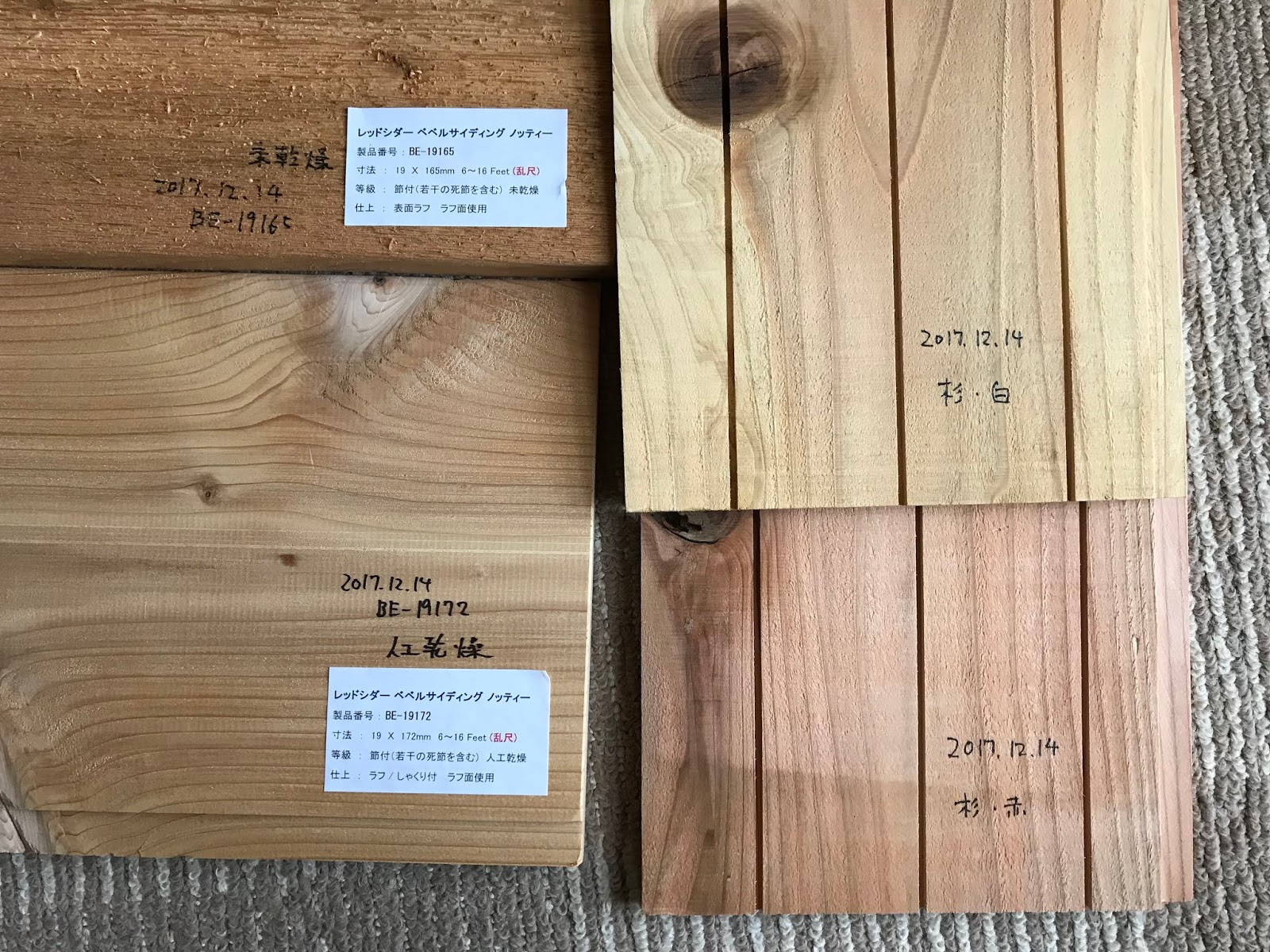 今日のサンプル レッドシダー経年変化前田木材株式会社。