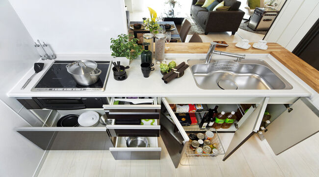 システムキッチンの収納アイデアを公開!使いやすいキッチンとは?定額リフォームのリノコ。