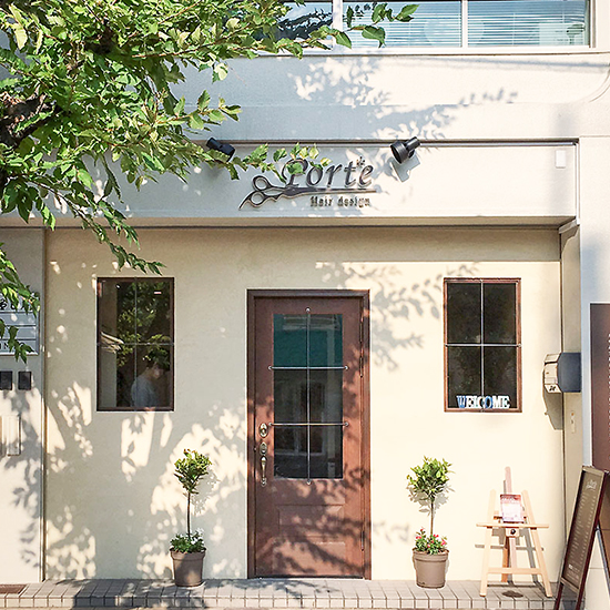 モノトーンの外観がおしゃれな1席限定美容室 me time hair と木製玄関ドア。 - ユダ木工株式会社。