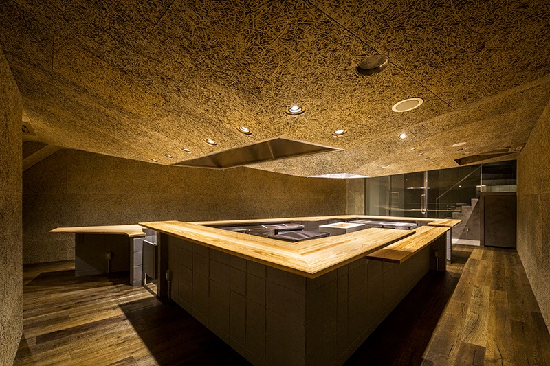 大勢でカウンター中央の火を取り囲む、洞窟のような飲食スペースデザリノ住宅・店舗・事務所物件のデザインリノベーション。