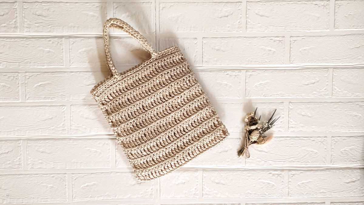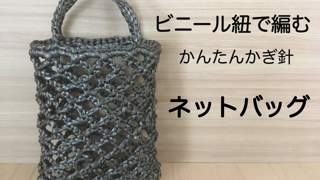 かぎ針編み 簡単丈夫なビニール紐バッグの編み方☆How to crochet bag。