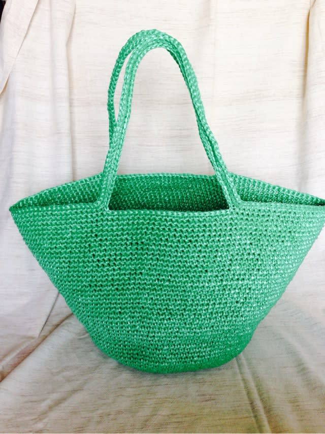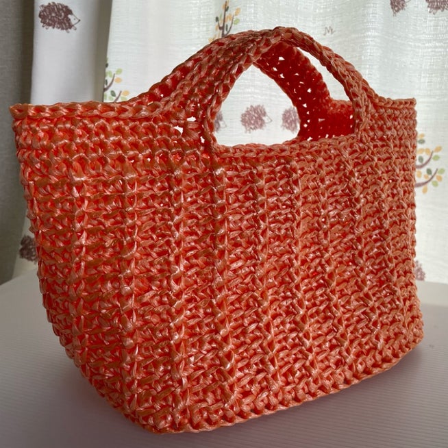 ビニール紐のバッグ編み終わりました。ハンドメイドで暮らしたい。 - 楽天ブログ。