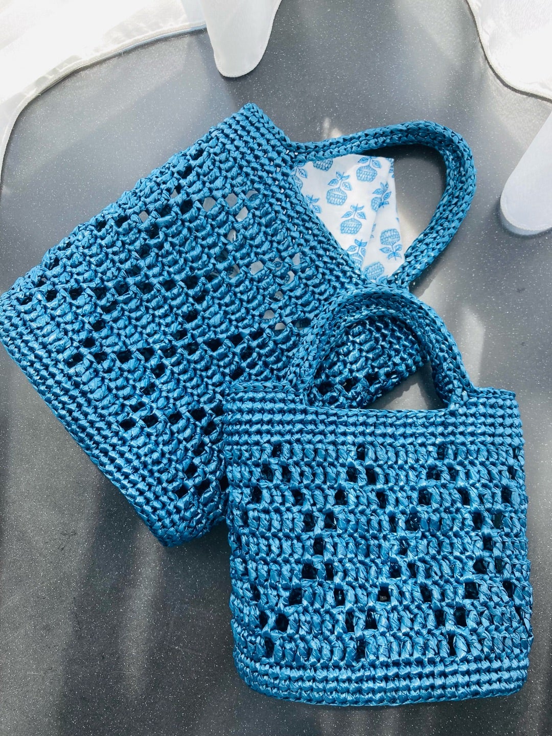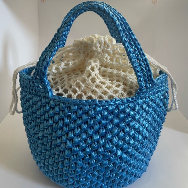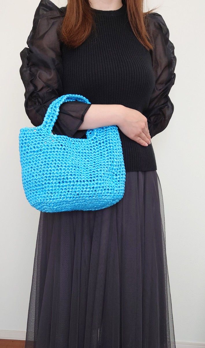 ビニール紐ハンドメイドバッグ♡爽やかブル。