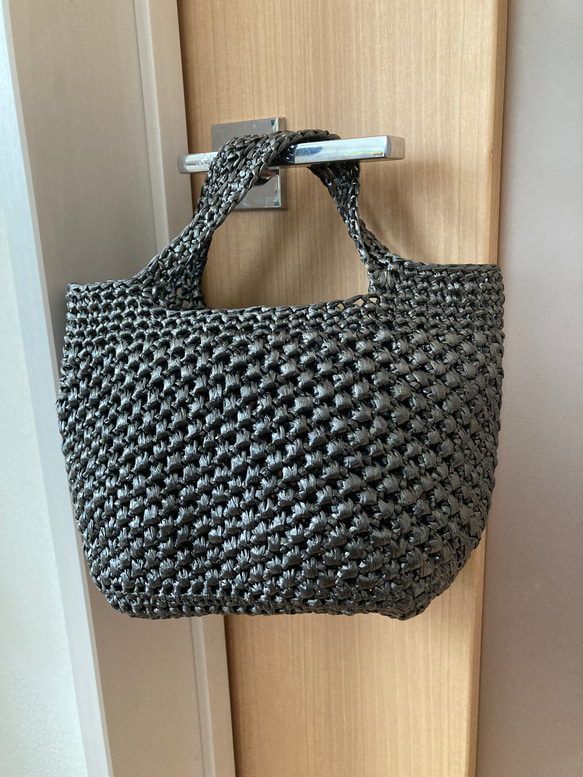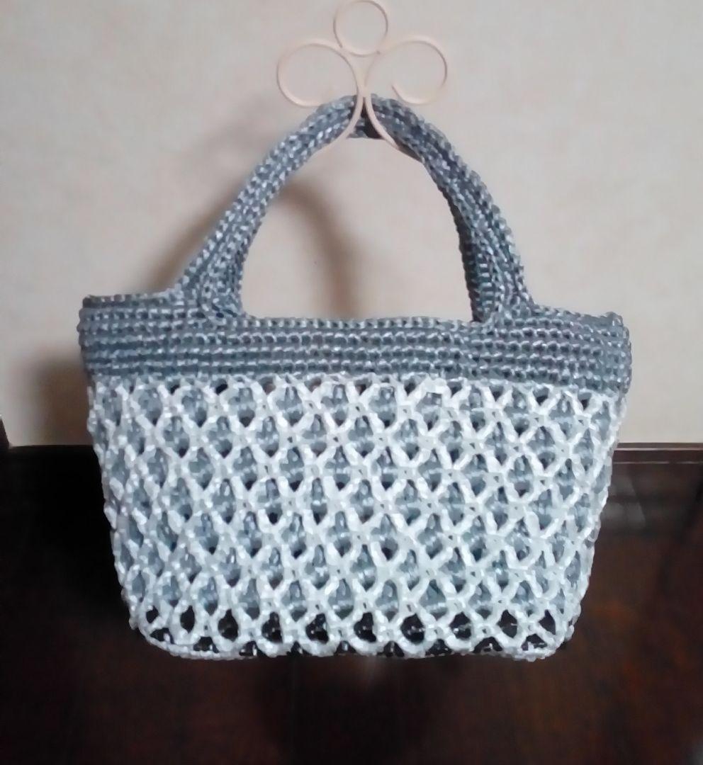 ビニール紐バッグ ビニールテープバッグ スズランテープバッグ シルバー トートバッグ かごバッグ かぎ編み マルシェバッグ Yahoo!フリマ 旧PayPayフリマ。