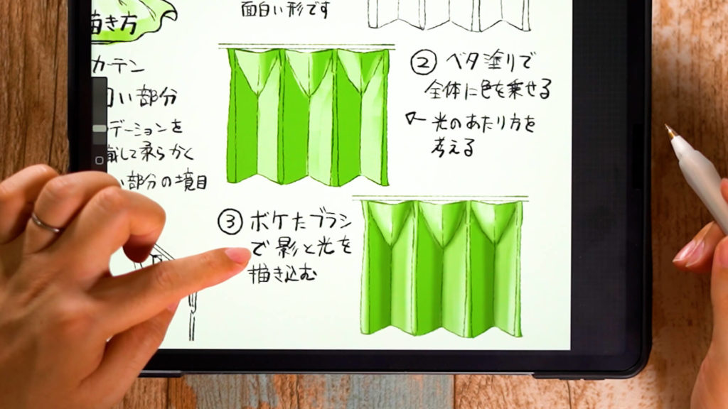 インテリアスケッチ 立体感あるカーテンの描き方 建築・インテリアパース基礎。