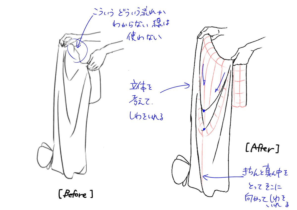 支点を決めよう! パターンで覚えるシワの描き方いちあっぷ。