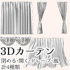 靡く揺れるカーテン3点セット素材集 - CLIP STUDIO ASSETS。