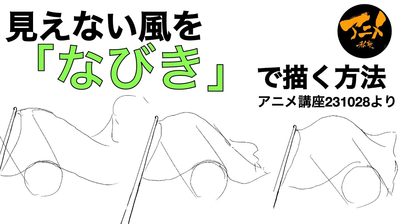 アニメ講座「見えない風をなびきで描く方法」※231028。