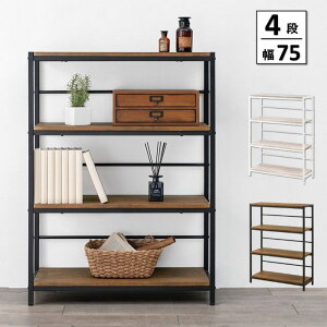 最大500円クーポンシェルフ 棚 4段 木製 スチール ナチュラル ブラウン W 108 × D 41 ラック 本棚 ウッド アイアン 天然木オープン 木製棚 収納棚 オープンラック シンプル 茶 こげ茶 リビング 収納 キッチン 奥行深め 91484アジア工房。