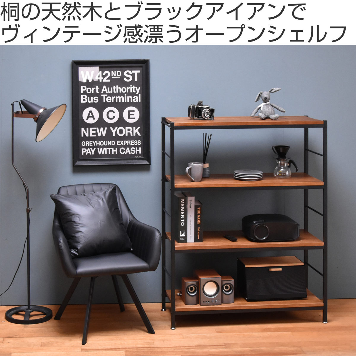 dショッピング オープンラック 4段 ヴィンテージ調 天然木棚板 幅90cmラック シェルフ 収納 棚 本棚 天然木 家具 桐 飾り棚ディスプレイ 間仕切 木製 ブラックアイアン バイカラーカテゴリ:本棚・ラック・シェルフの販売できる商品リビングート。