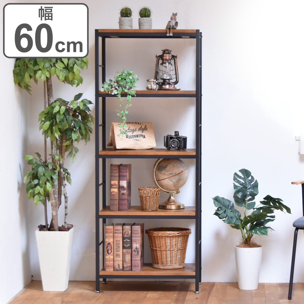 オープンラック 5段 ヴィンテージ調 天然木棚板 幅60cmラック シェルフ 収納 棚 本棚 天然木 家具 桐 飾り棚 ディスプレイ 間仕切木製 ブラックアイアン バイカラー。