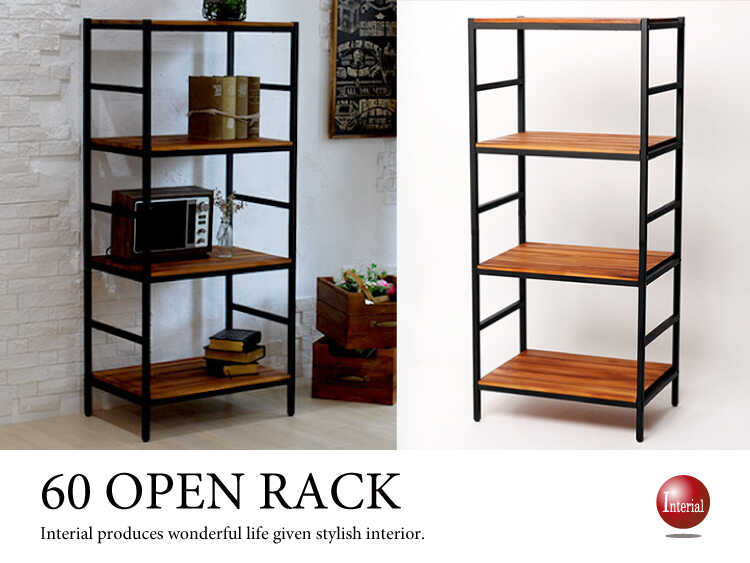 ラック 棚 本棚 アイアン 木製 シェルフ 幅60 オープンラック 収納棚 2段 3段 4段 5段 ディスプレイ おしゃれ ヴィンテージ 西海岸ブルックリン モダン 男前 アイアンラック マガジンラック 無垢 リビング 間仕切り インテリアEasyファニチャ。