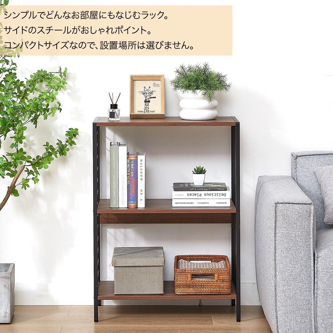 Amazon天然木3段オープンラック ブラックウォルナット アイアンフレーム 耳付風IT-3OST オープンシェルフ・ラック オンライン通販。